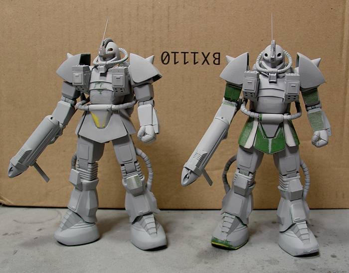 左側・素組みのザク・マリンタイプ、( 他の方が撮影したモノをお借りしました。 )