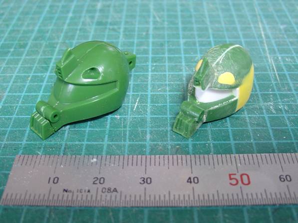 素組み状態の頭部と小型化を行った状態の頭部比較です。