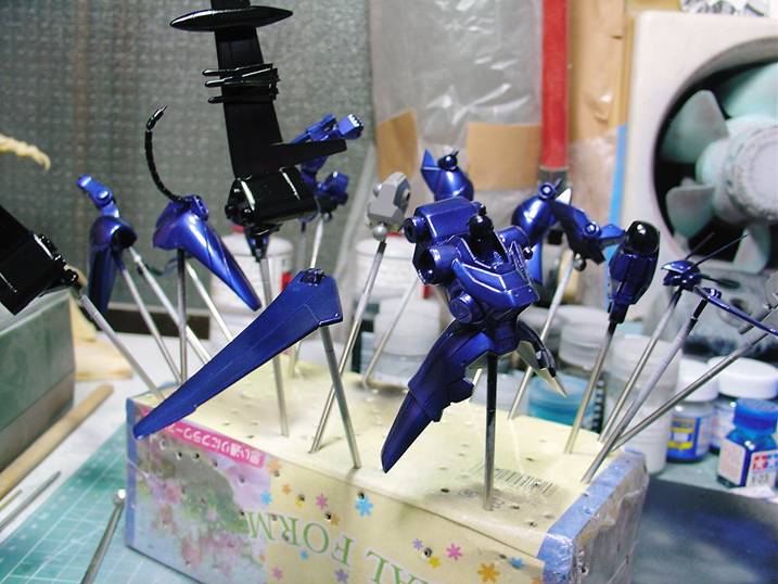 下地処理終了後、光沢ブラックを塗装下地にブルーパールとパープルパールを50=50で調合
