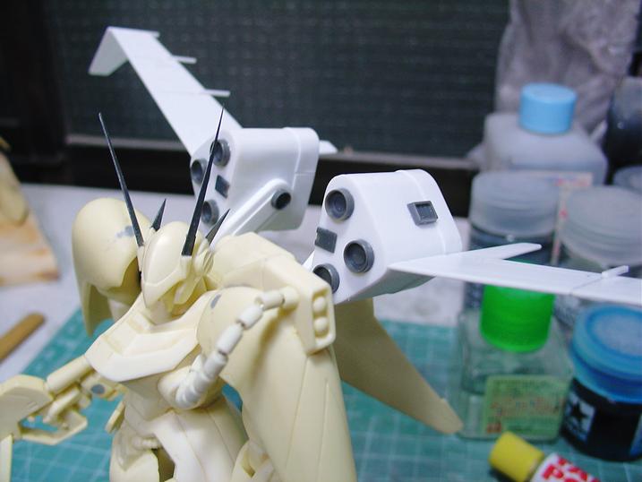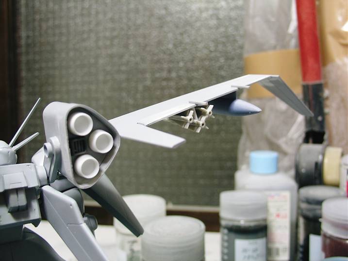 フライトユニットのスラスターはハセガワ・マクロスのウェポンセットの反応弾のモノを使用。