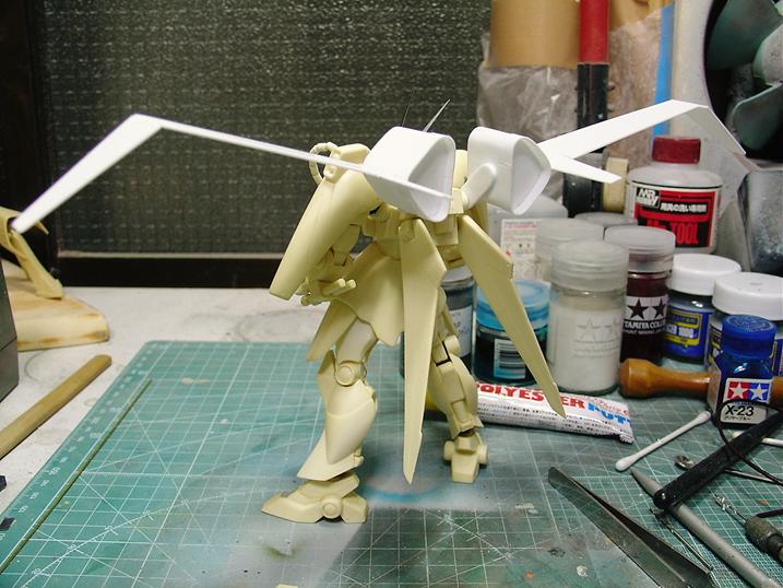 翼は1mm.プラ板で切り出し、見えにくいですが…スジ彫りを行ってます。